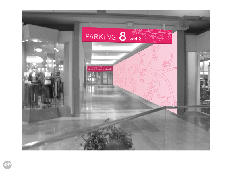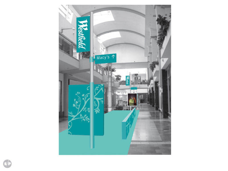 Garden State Plaza was an environmental graphic project at Sussman/Prejza. These designs were presented in the conceptual stage of design for its identity graphics and way-finding signage for a shopping mall in Paramus, NJ.